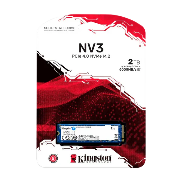 El Kingston NV3 2 TB PCIe NVMe SSD es una unidad de estado sólido interna de alto rendimiento diseñada para reemplazar discos duros tradicionales y mejorar notablemente el almacenamiento en laptops y PCs modernas. Usa la interfaz PCIe 4.0 x4 con protocolo NVMe, lo cual le permite alcanzar velocidades de transferencia superiores a los SSD SATA antiguos, acelerando el arranque del sistema operativo, la carga de aplicaciones y la transferencia de archivos pesados como juegos, vídeos o proyectos multimedi